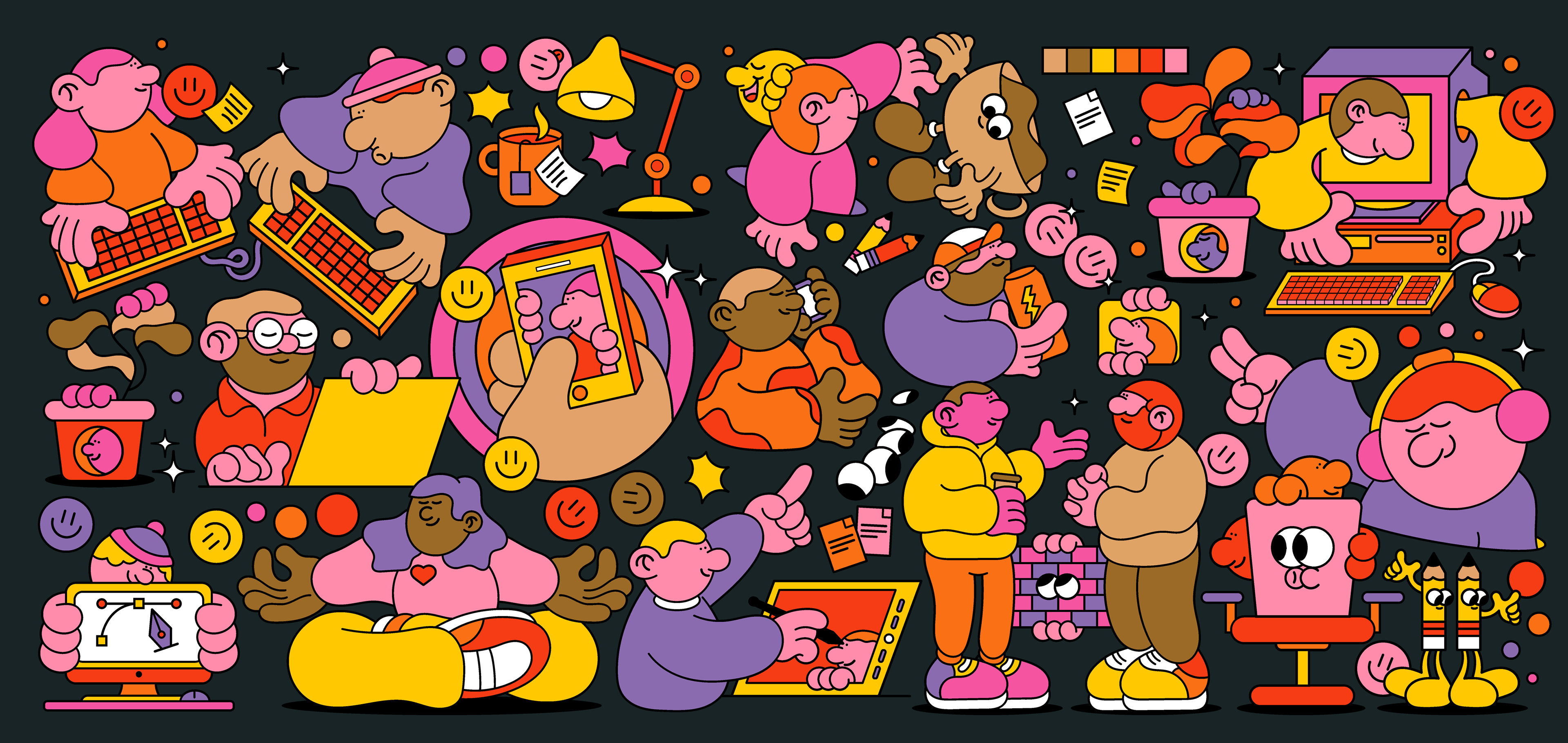 Illustration by Guilherme da Matta featuring a cast of characters you might find at an in-house team.